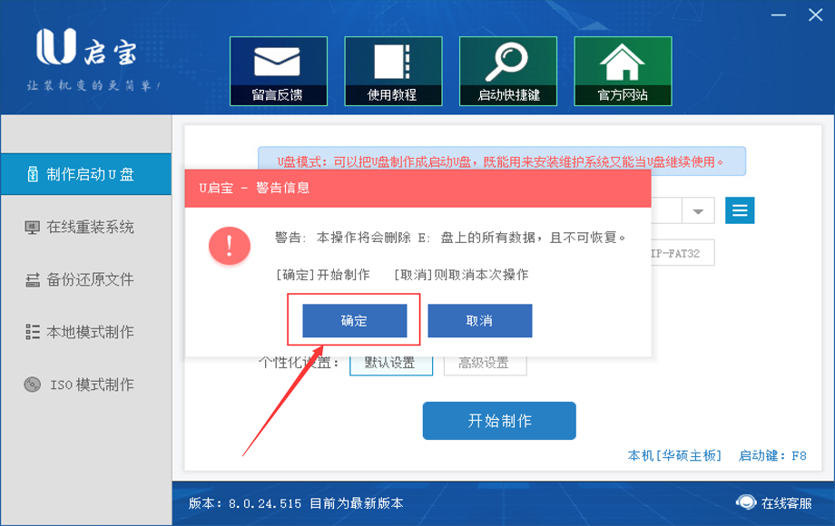 2.确认U盘中数据都是已经不需要了的,点击确定。