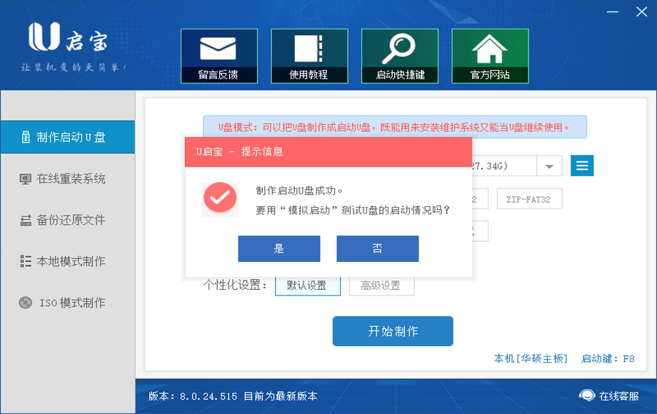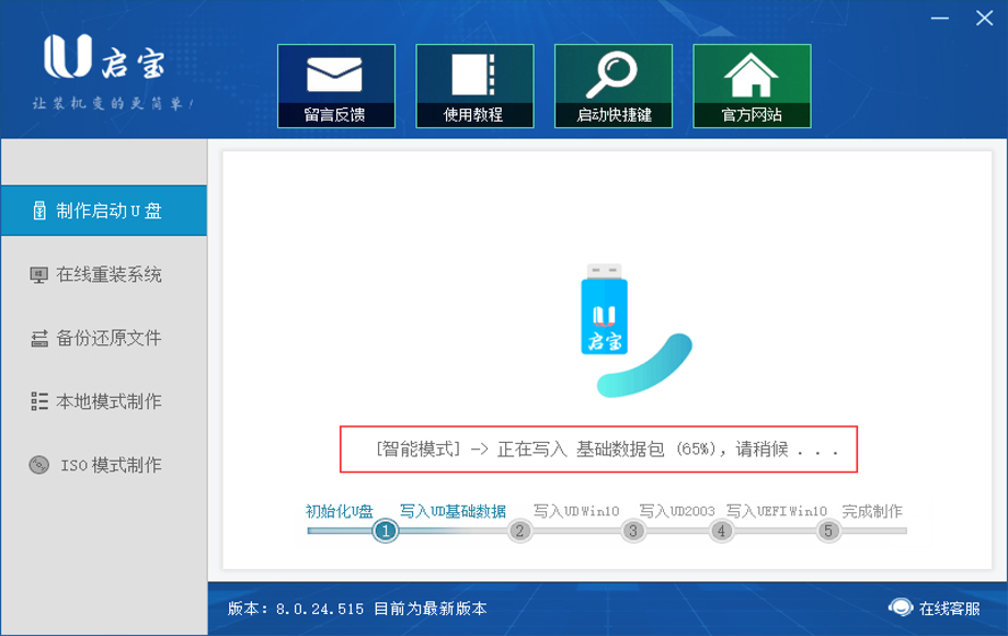 3.接下来只需耐心等待U启宝会智能制作U盘启动盘直至完成
