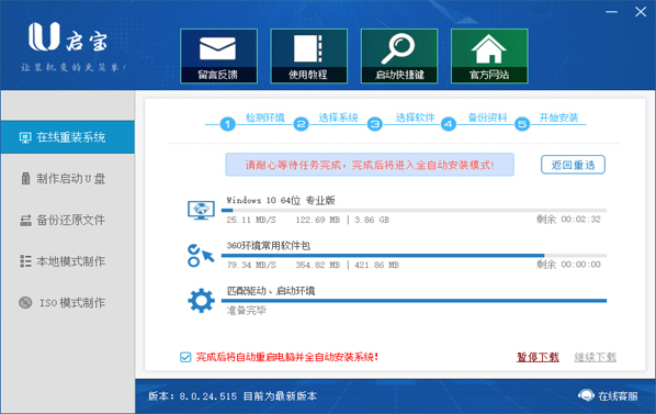 3.下载系统,到了这一步时用户即可离开电脑,程序会全自动完成重装步骤。